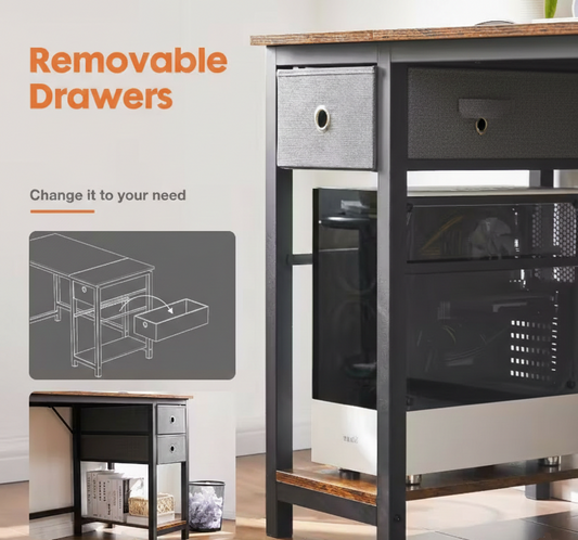 40/47 Inch Computer Desk with Fabric Storage Drawers, Modern Home Office Table