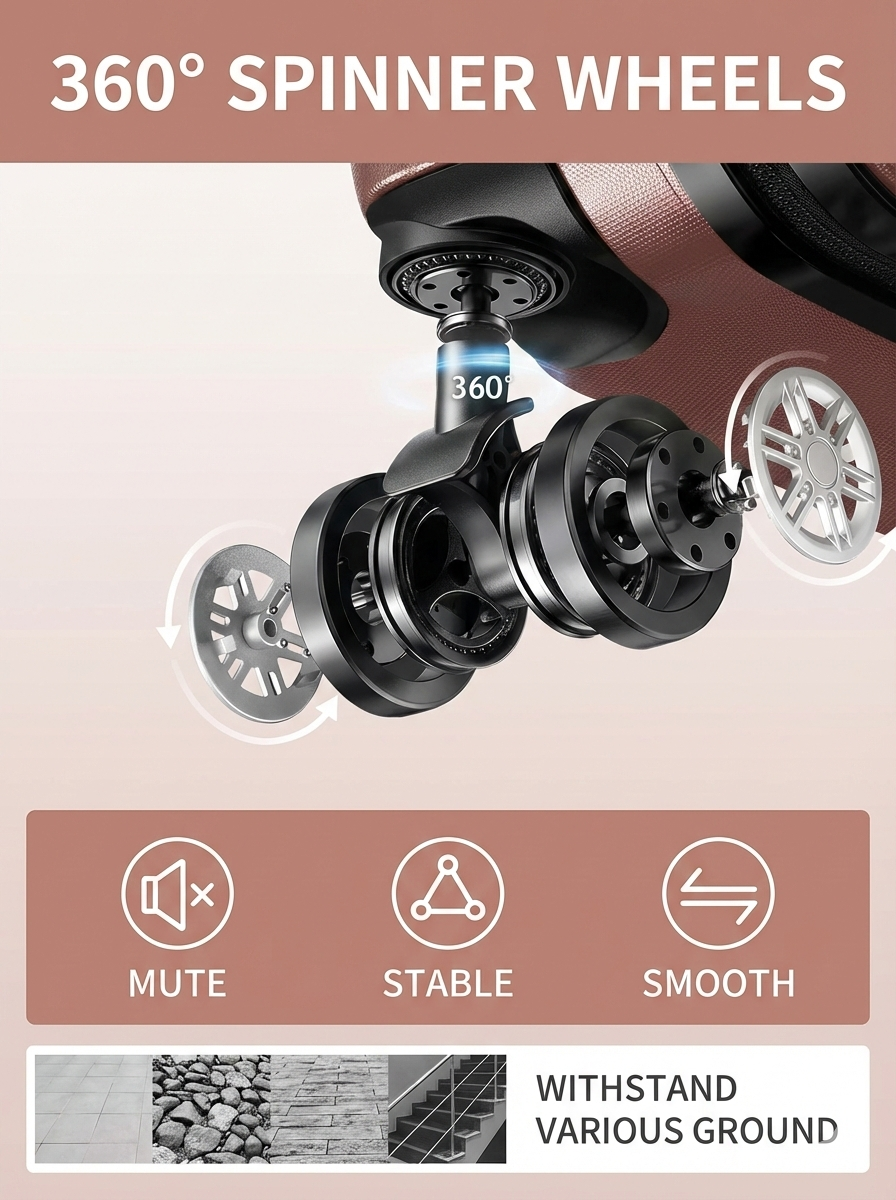 360-degree spinner wheels for smooth rolling