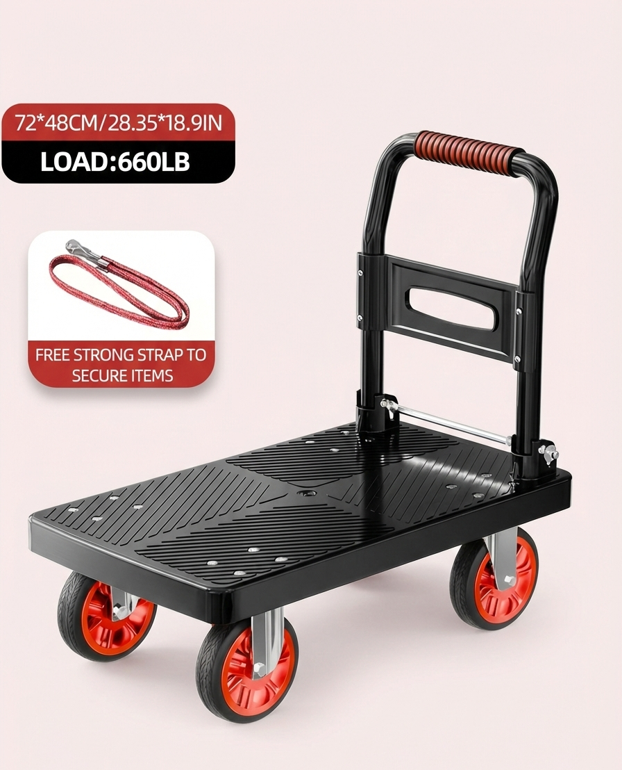 Heavy Duty Folding Platform Cart-350/660/820 lb-Flatbed Hand Truck with Strap