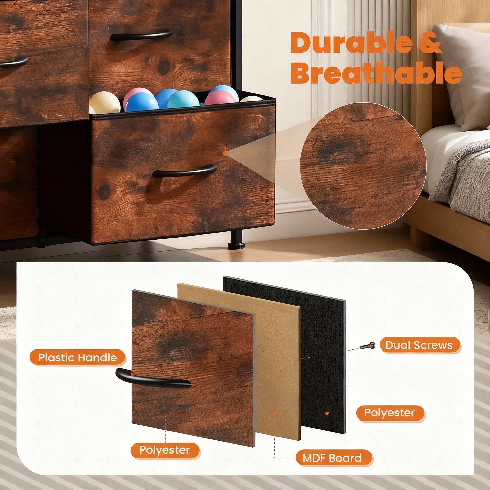 8-Drawer Metal Frame Dresser Wall-Mountable High-Feet Quick-Assembly Bedroom Storage