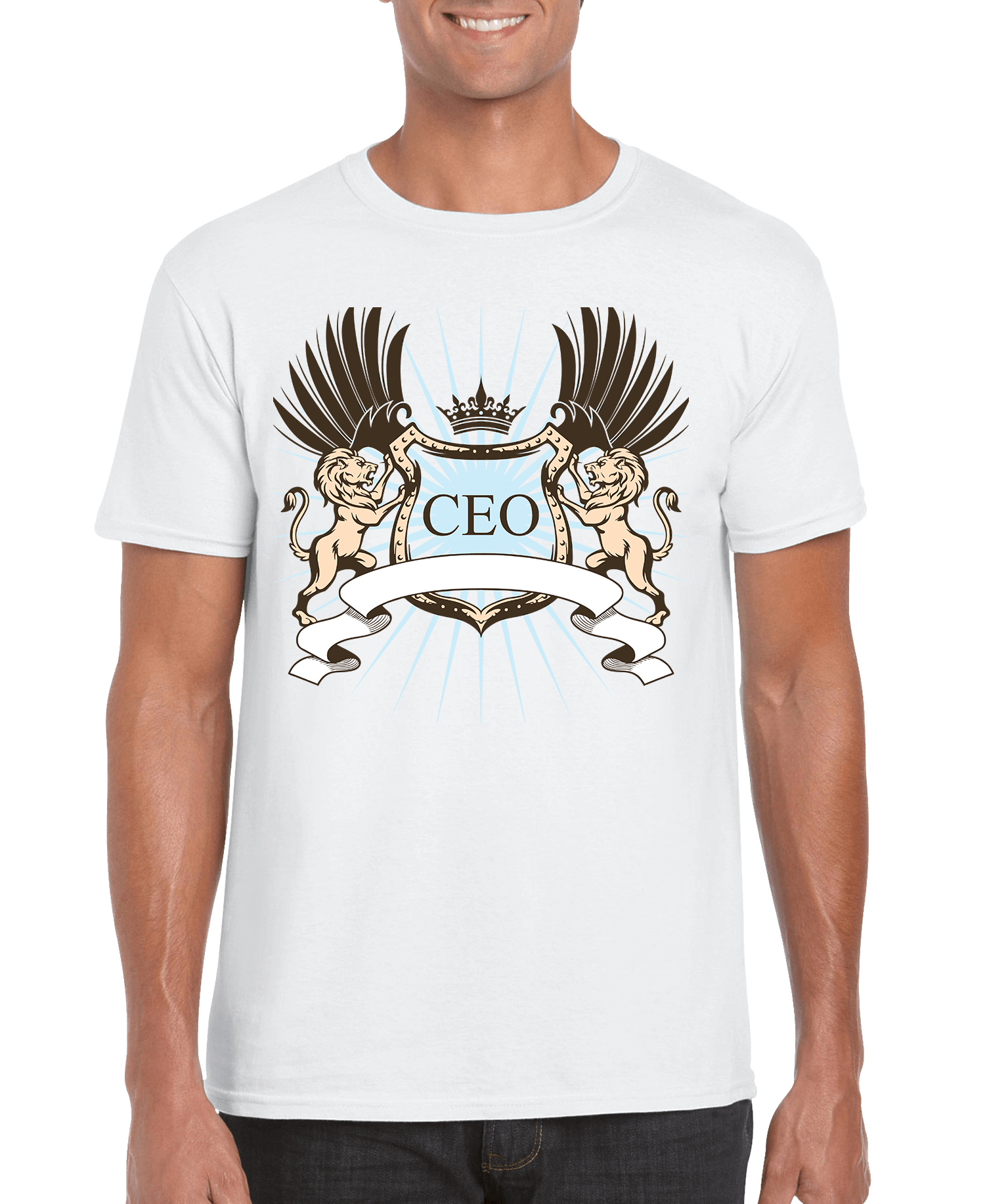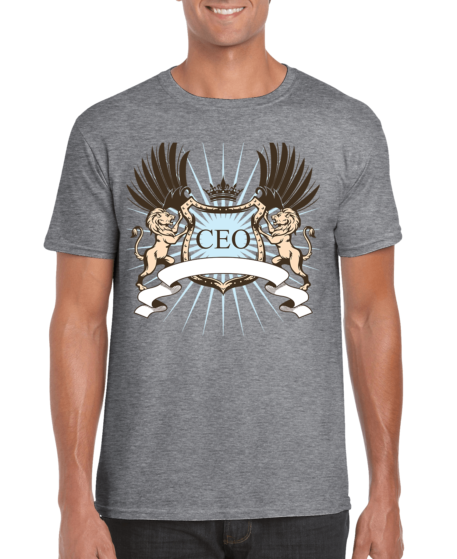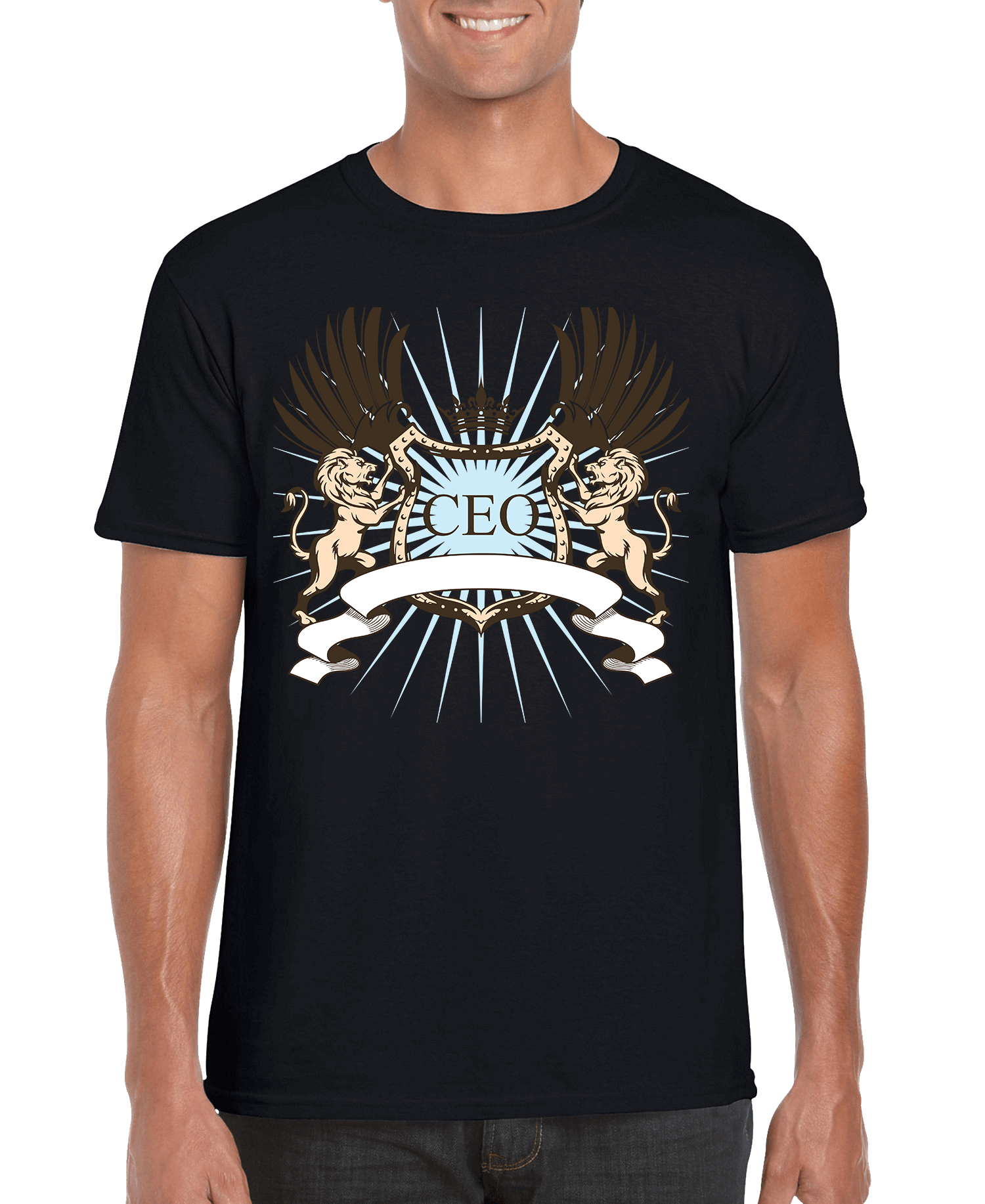 The "CEO Lion Crest" Men's T-shirt design exudes power and confidence with its bold lion crest. This modern and classic design represents leadership and strength, perfect for making a strong statement in any setting.