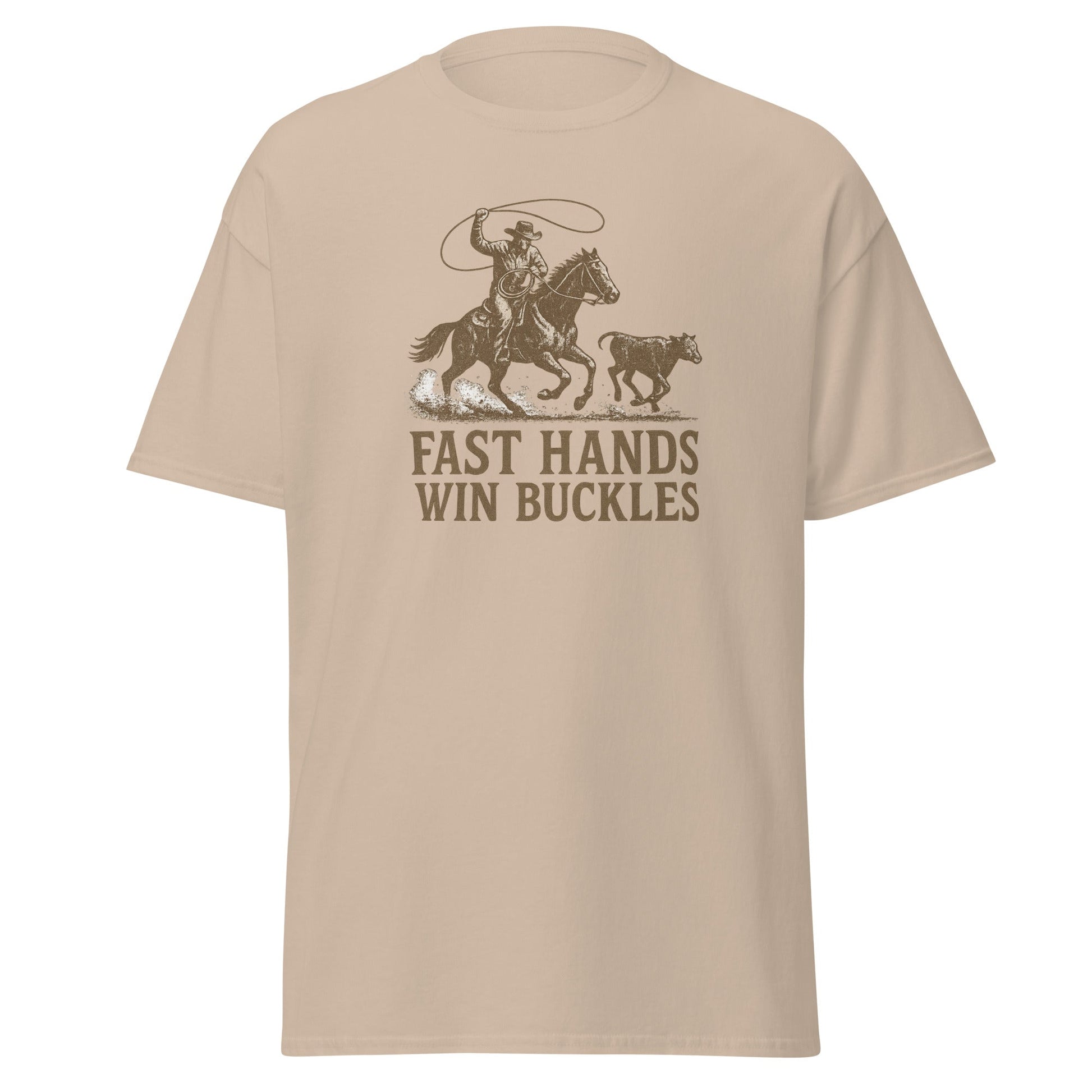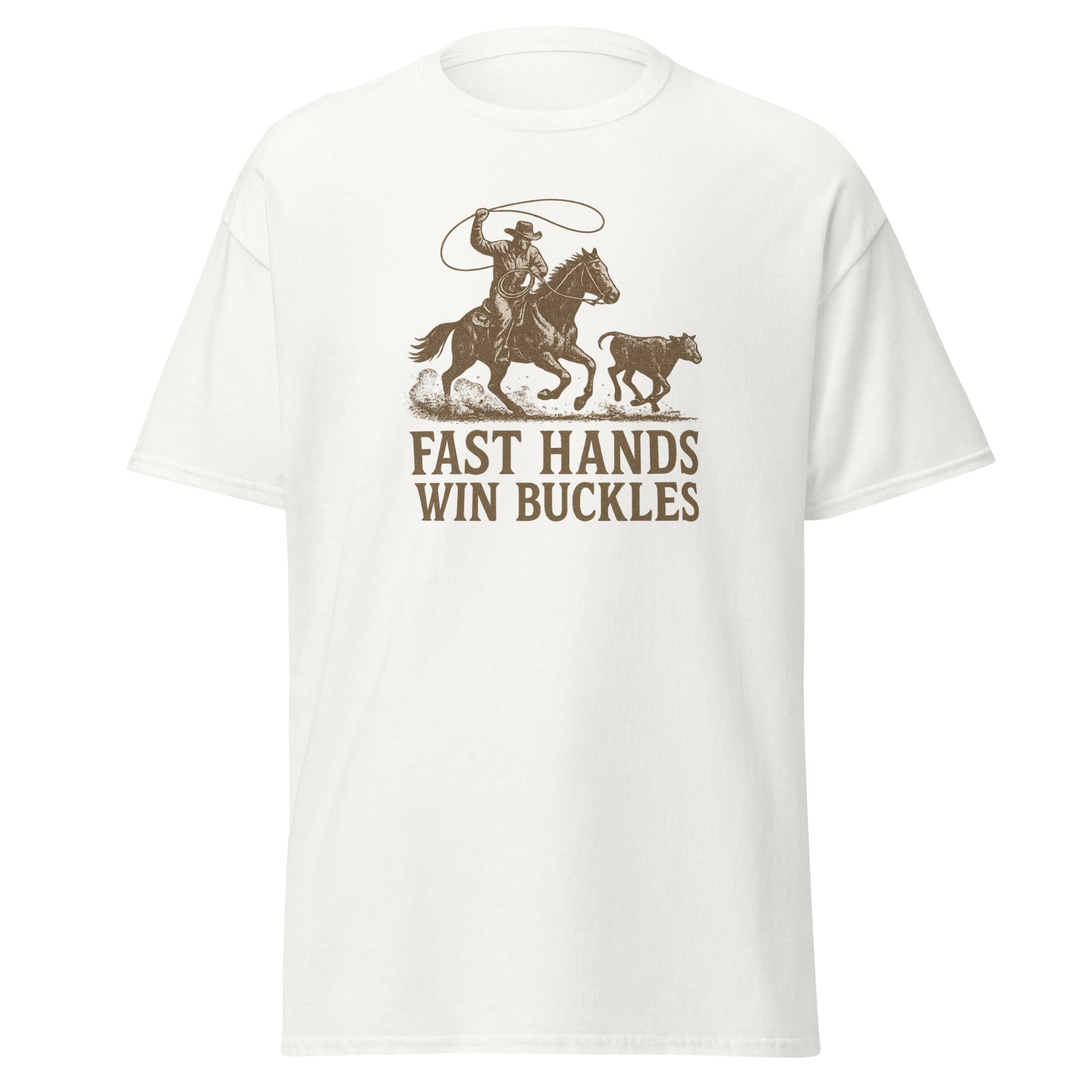 💥 Striking “Fast Hands Win Buckles” graphic with vintage rodeo flair