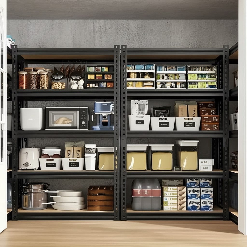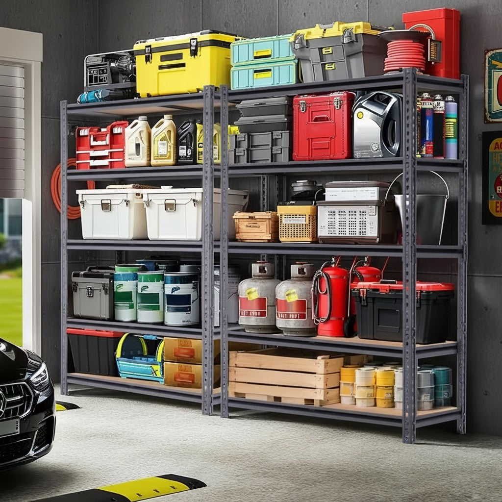 Upgrade your storage space with this heavy duty metal garage shelving rack, designed for strength, stability, and long-term use. Featuring a high load capacity of up to 2000 lbs (evenly distributed), this shelving unit is ideal for storing heavy tools, storage bins, automotive supplies, appliances, and warehouse inventory.