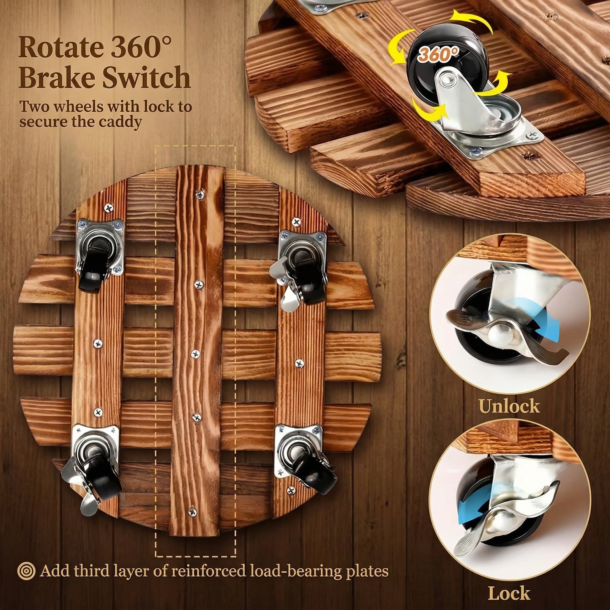 Rolling Wood Caddy with Lockable Wheels β 2 Pack Heavy Duty Pot Stand