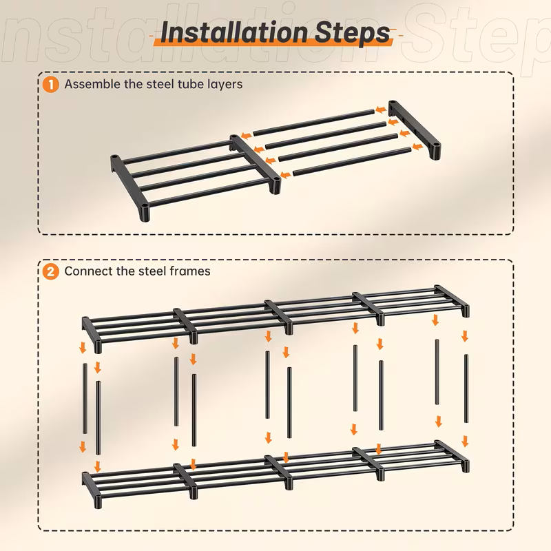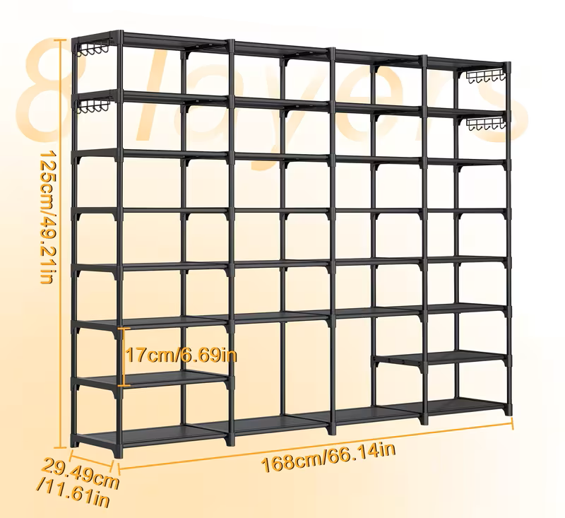 This multi-layer shoe rack features with multiple tiers, allowing you to store 30–80 pairs of shoes easily. Perfect for large families or shoe lovers who need maximum storage.