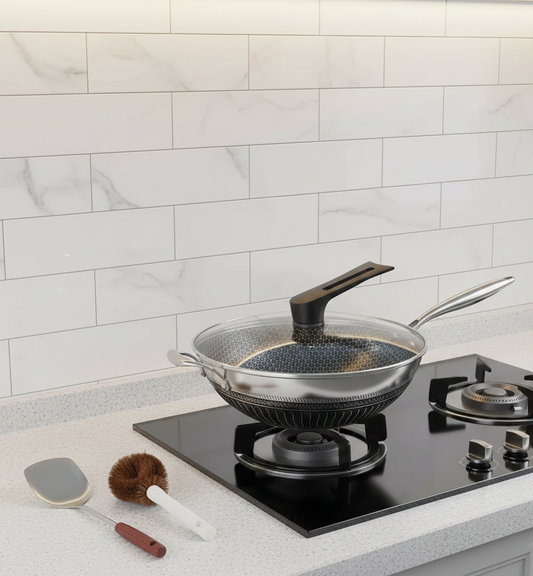 13.3″ Stainless Steel Wok Pan with Lid & Spatula – Nonstick – All Cooktops